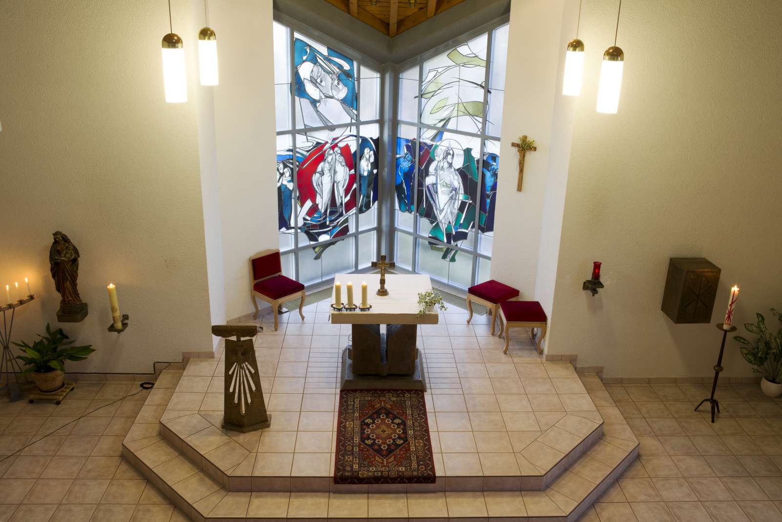 In unserer hauseigenen Kapelle finden die Mitarbeiterinnen und Mitarbeiter, die Bewohnerinnen und Bewohner Ruhe und Besinnung. Hier werden regelmäßig gemeinsame Gottesdienste gefeiert. Auch die Anwohner rund um das Caritashaus St. Elisabeth kommen am Sonntagvormittag gerne hierher.